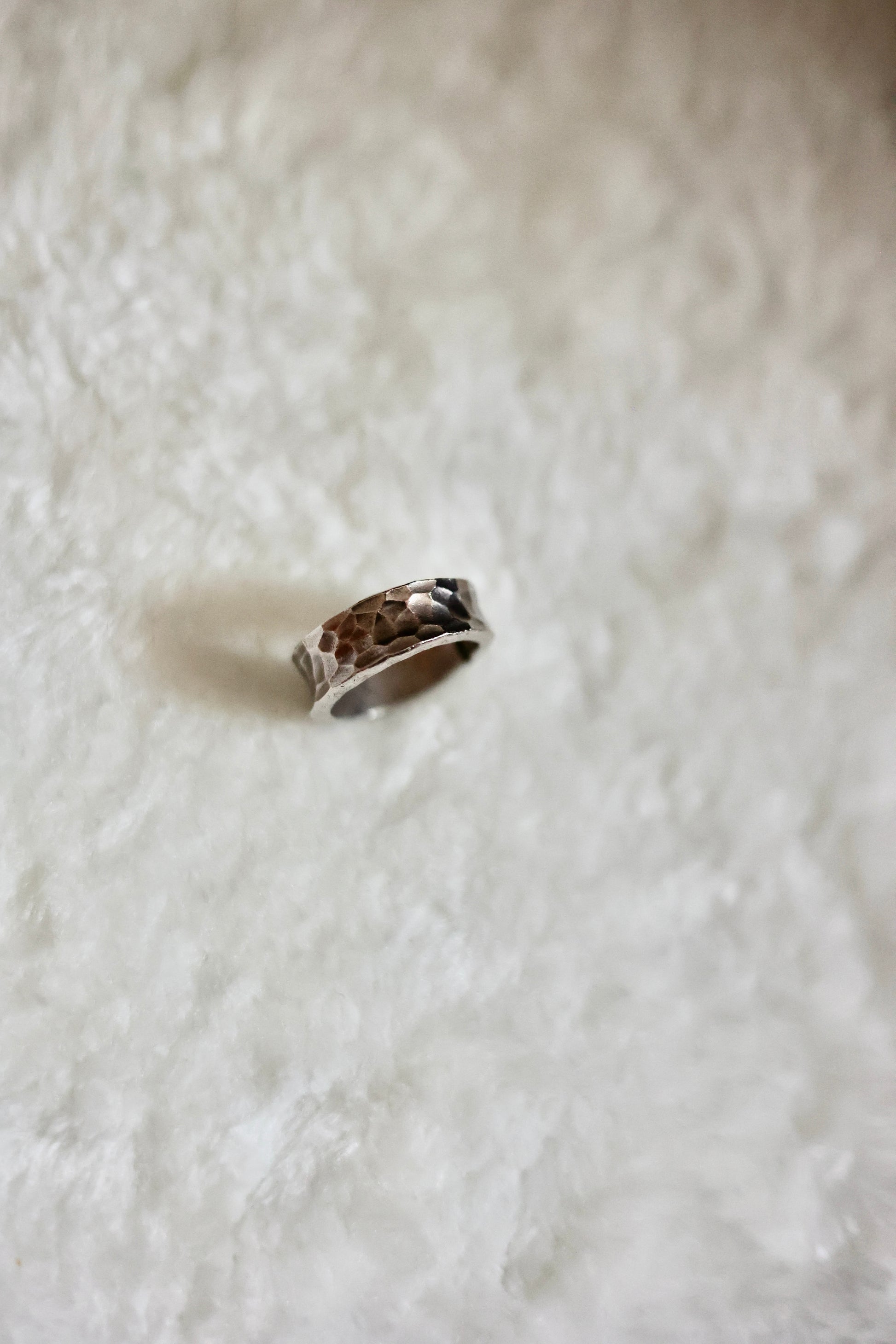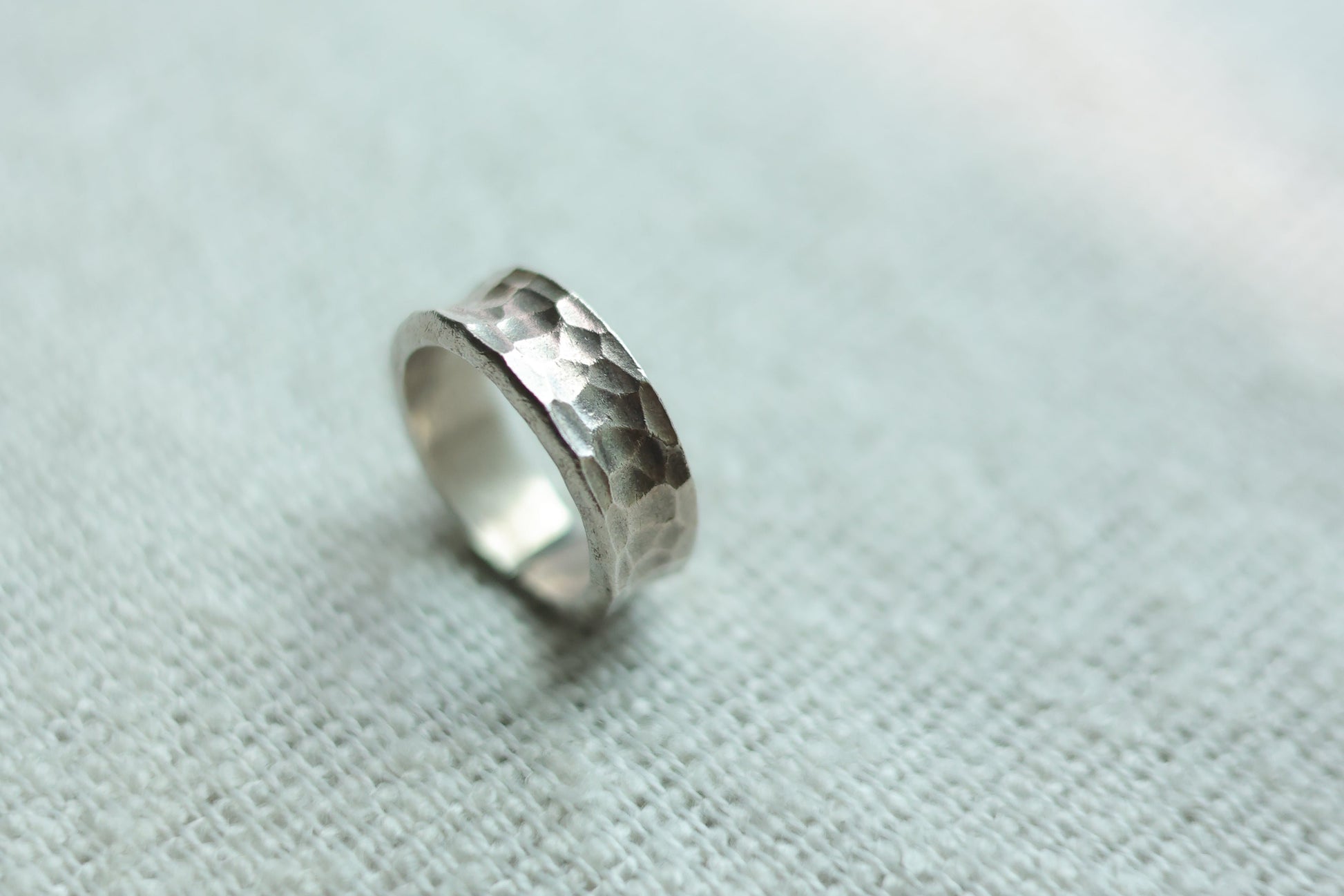 Handcrafted,Pure Silver Ring, Stone Texture, Unisex, Size10