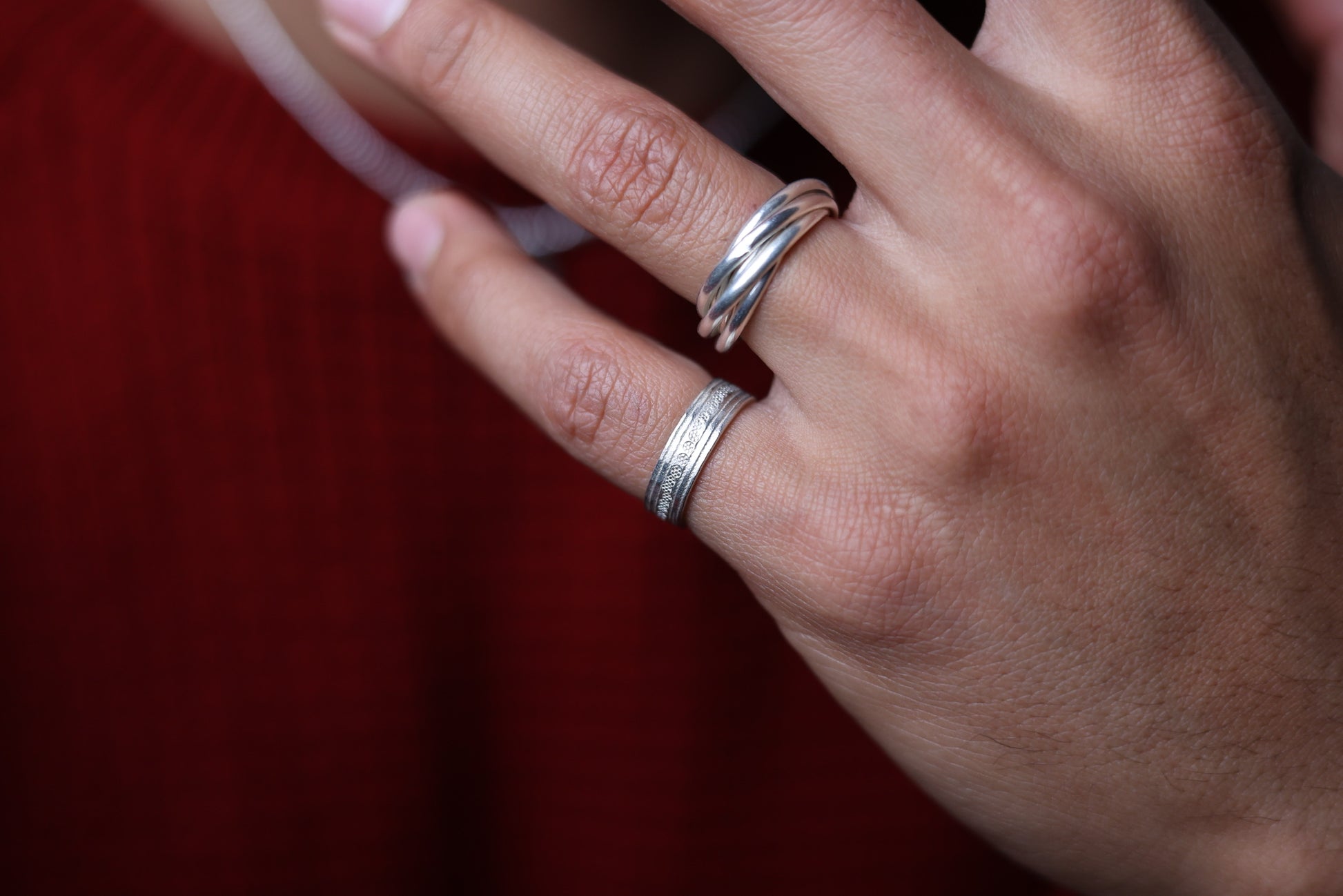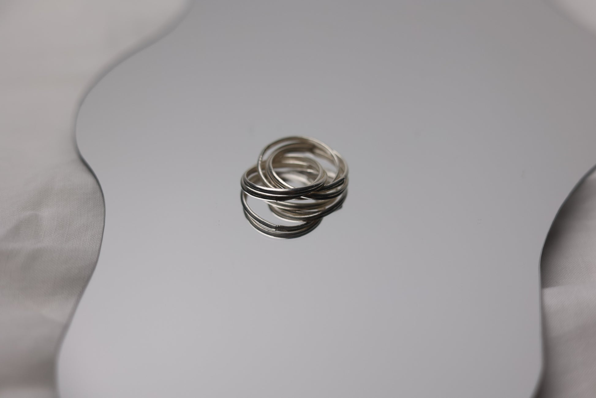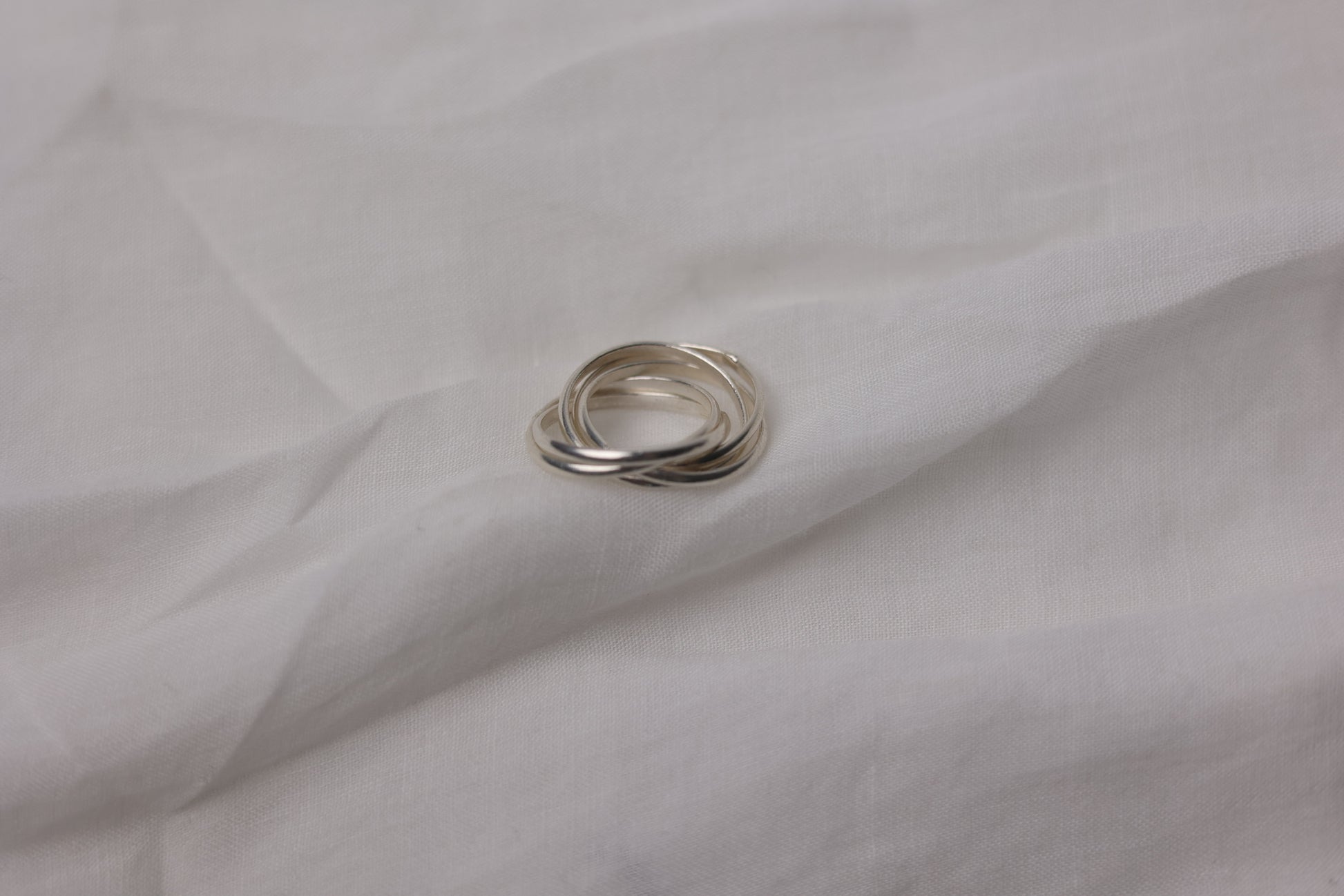 Handcrafted interlocked round rings,99.9% Silver, Minimalist style, Size 10, Unisex