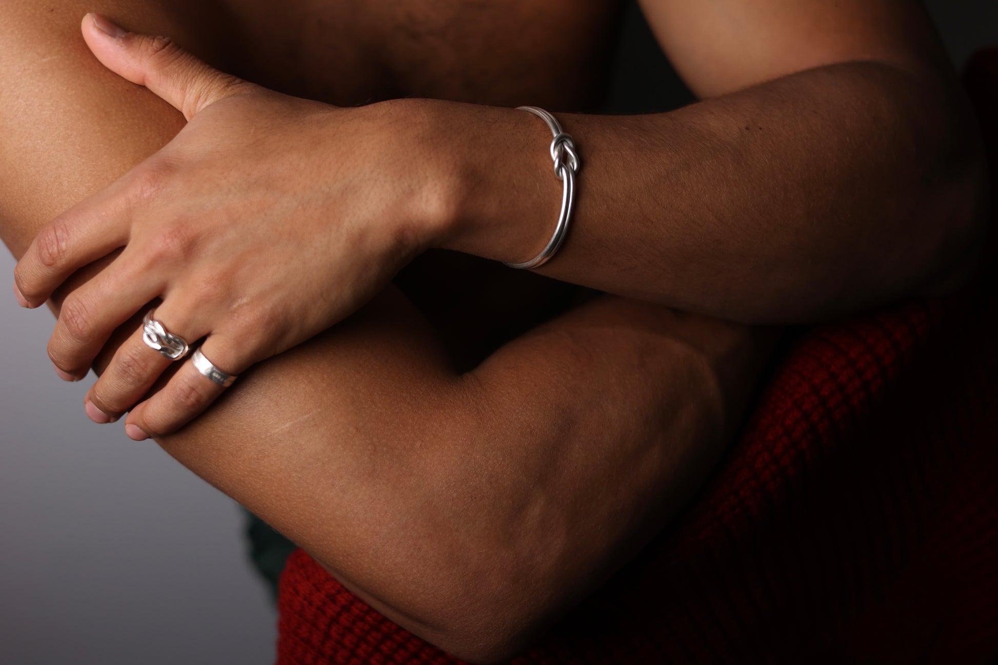 Handcrafted Minimal Style Silver Bangle-The Knot