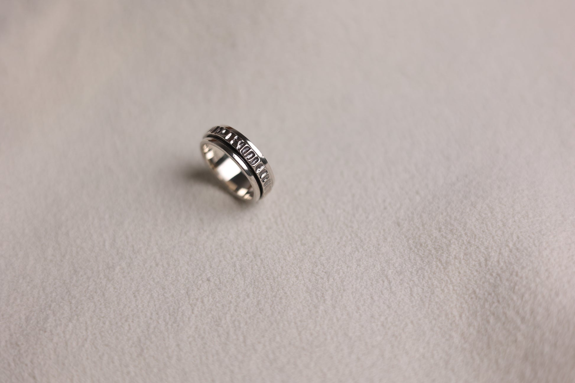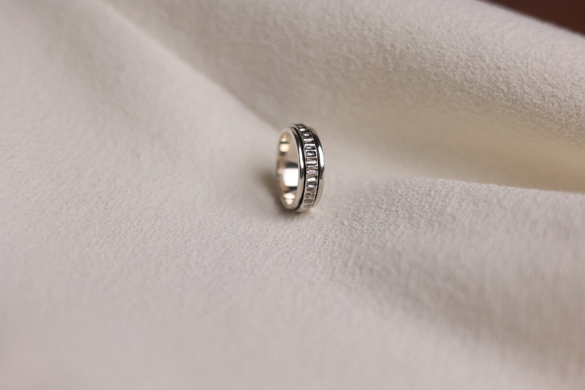 It features a smooth, rotating band that encourages focus and relaxation.