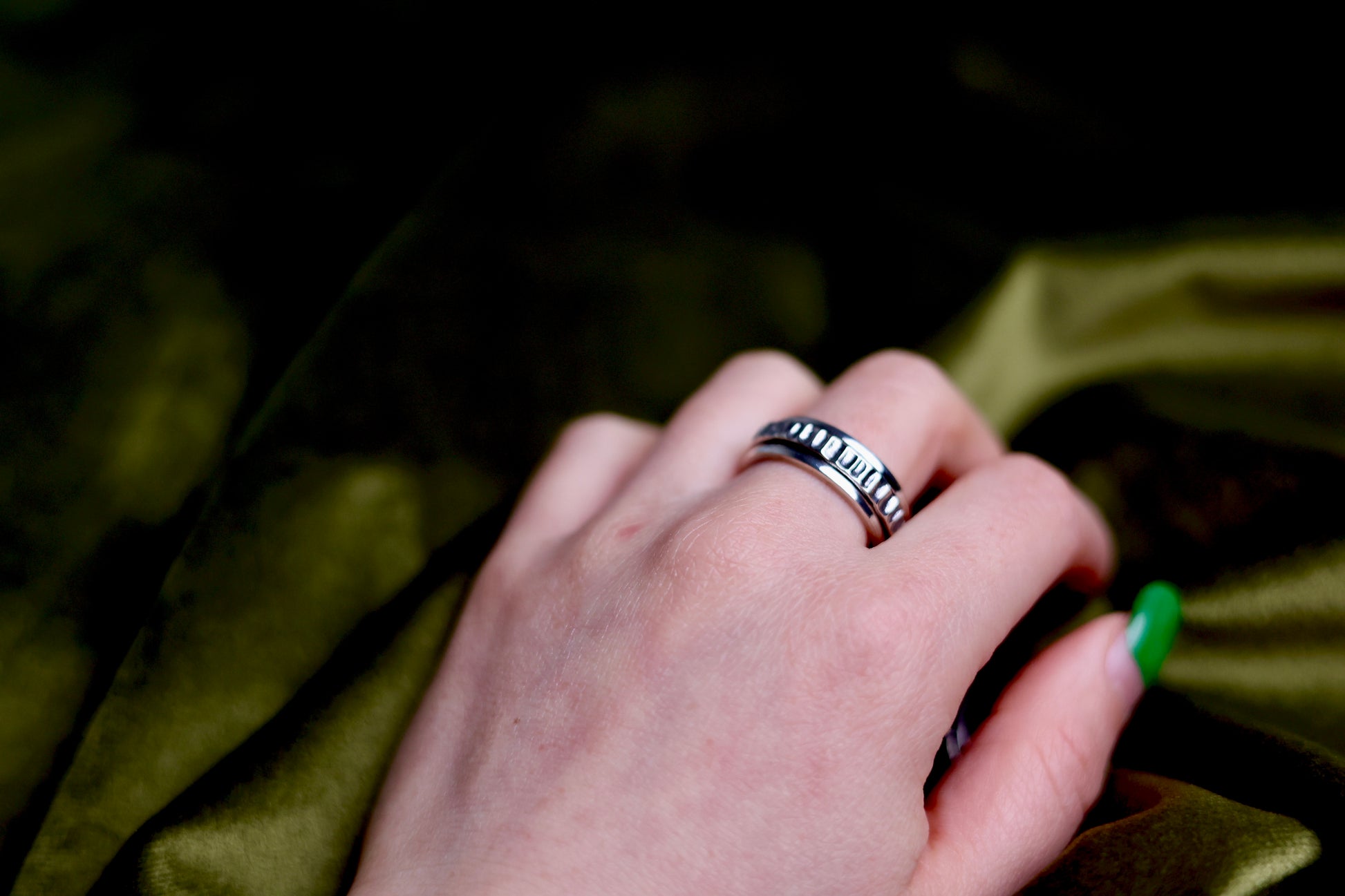 Handcrafted spinning ring, made from 4 harmony circles, designed for mindfulness.