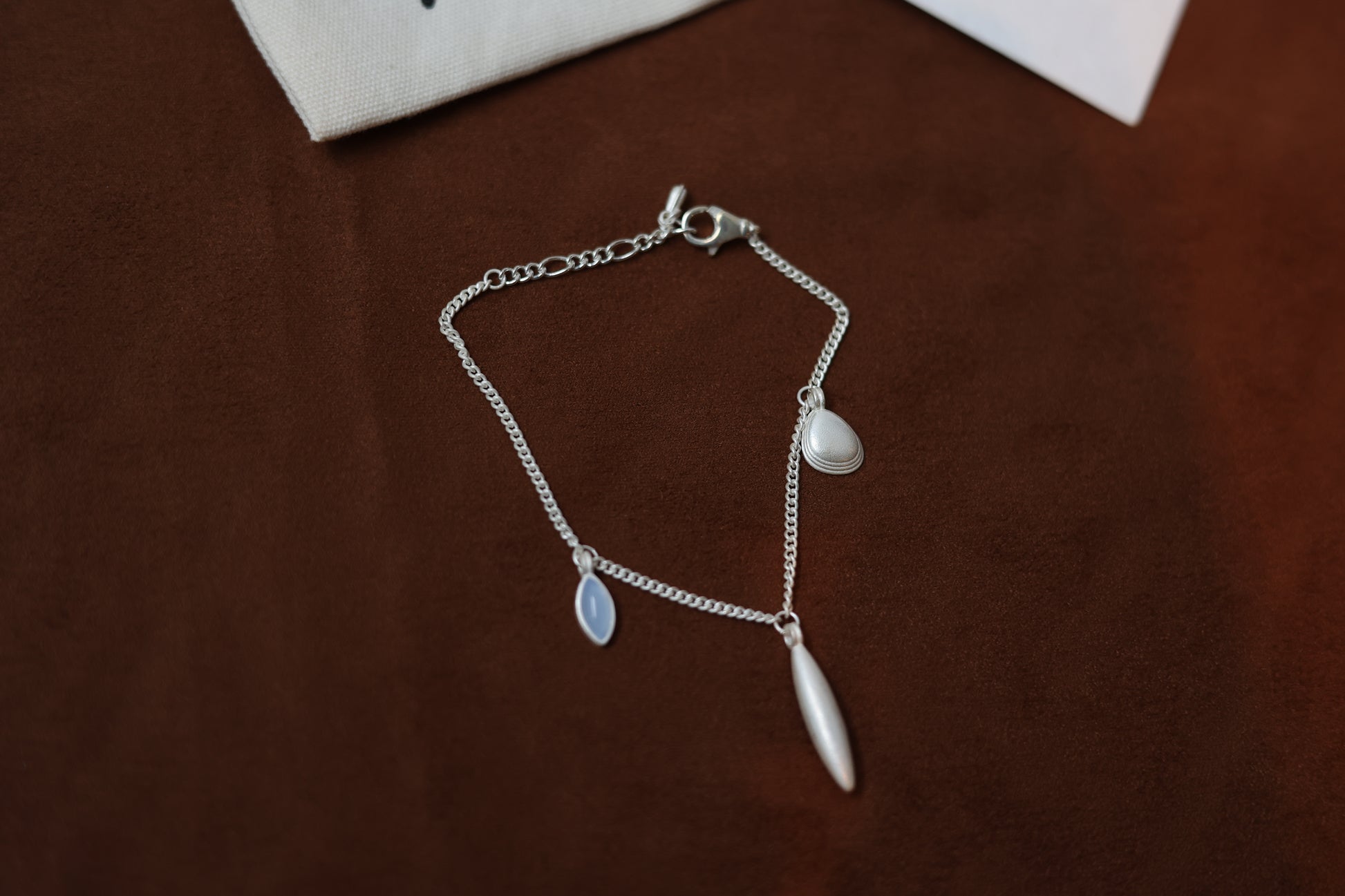 Matte White Silver Bracelet with Black&Blue Agate stones