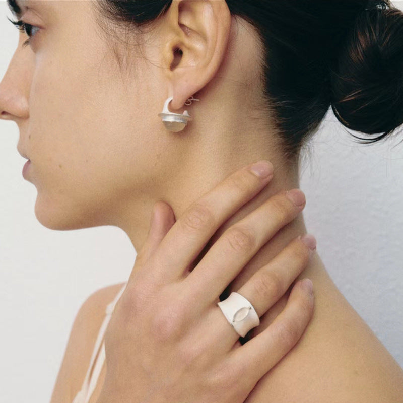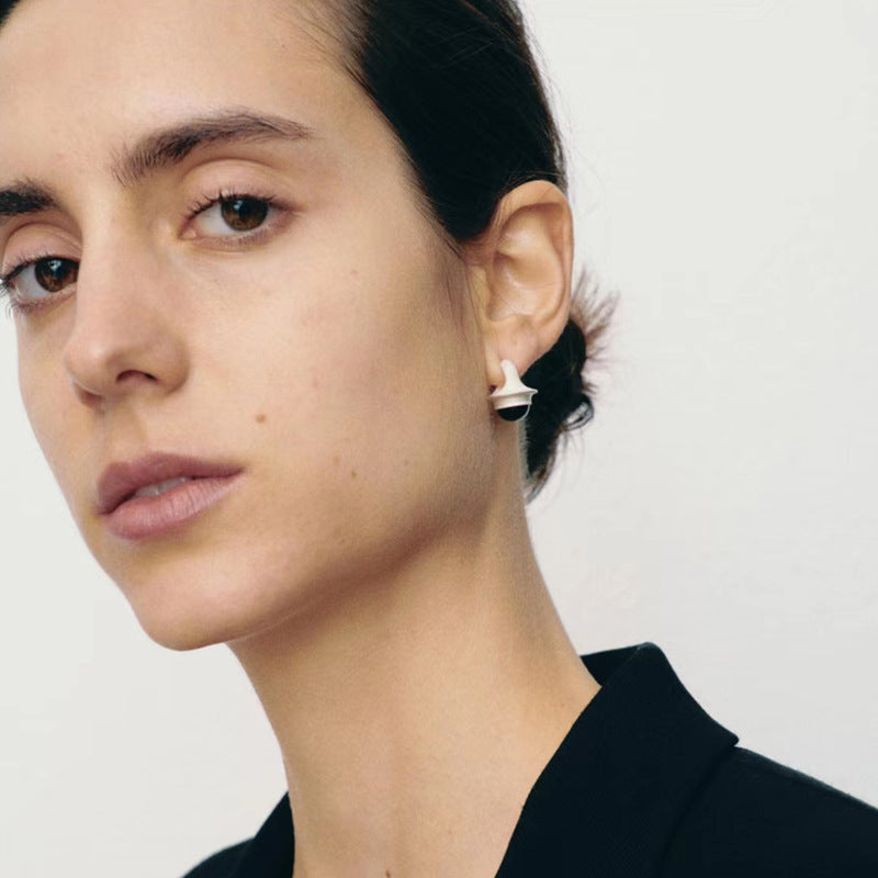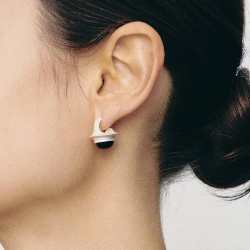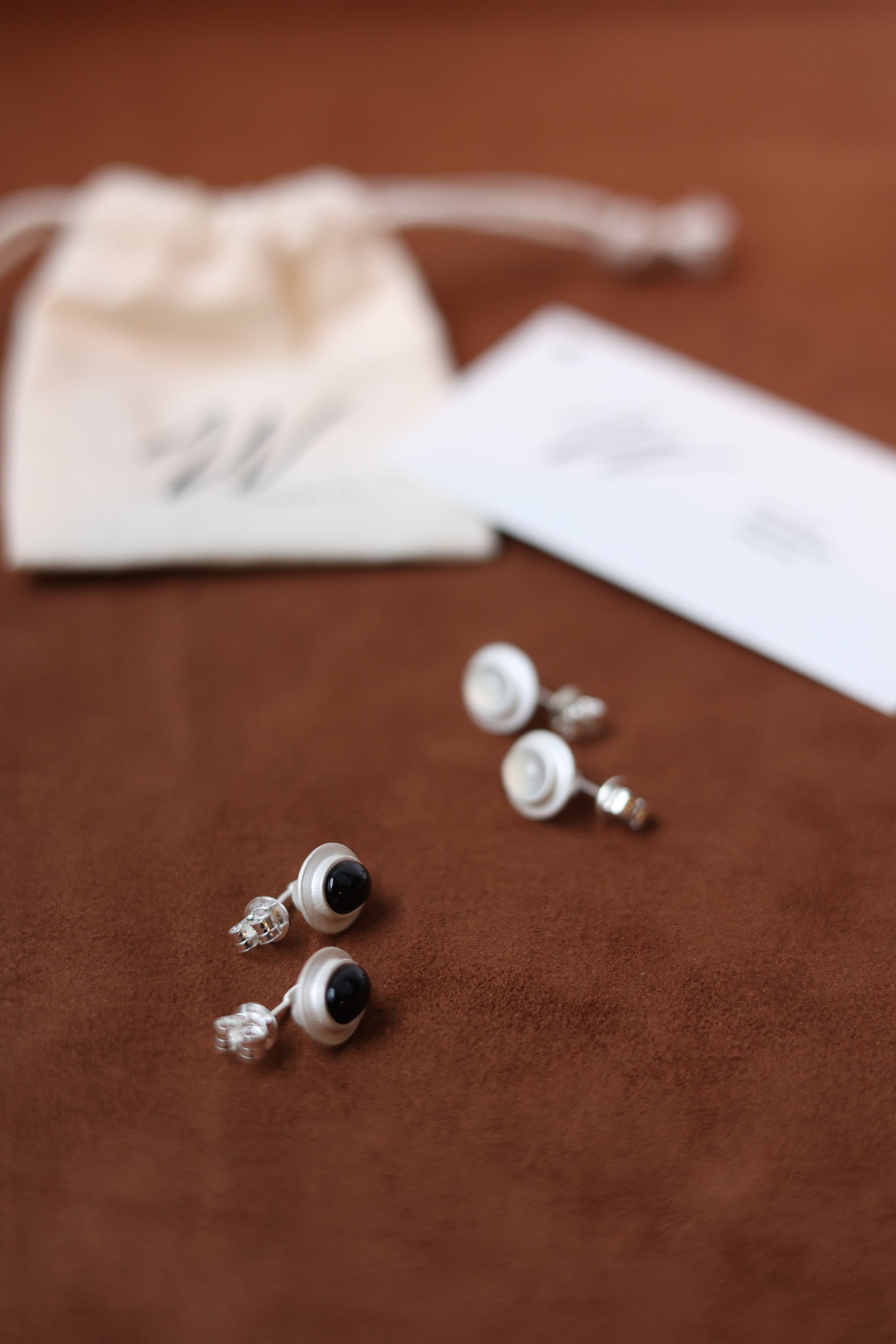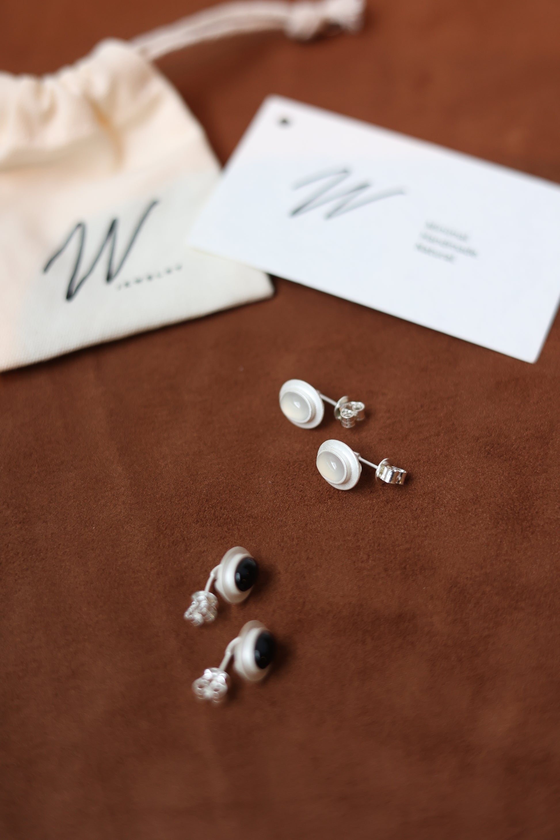 Matte White Silver Earrings with Black&White Agate stones