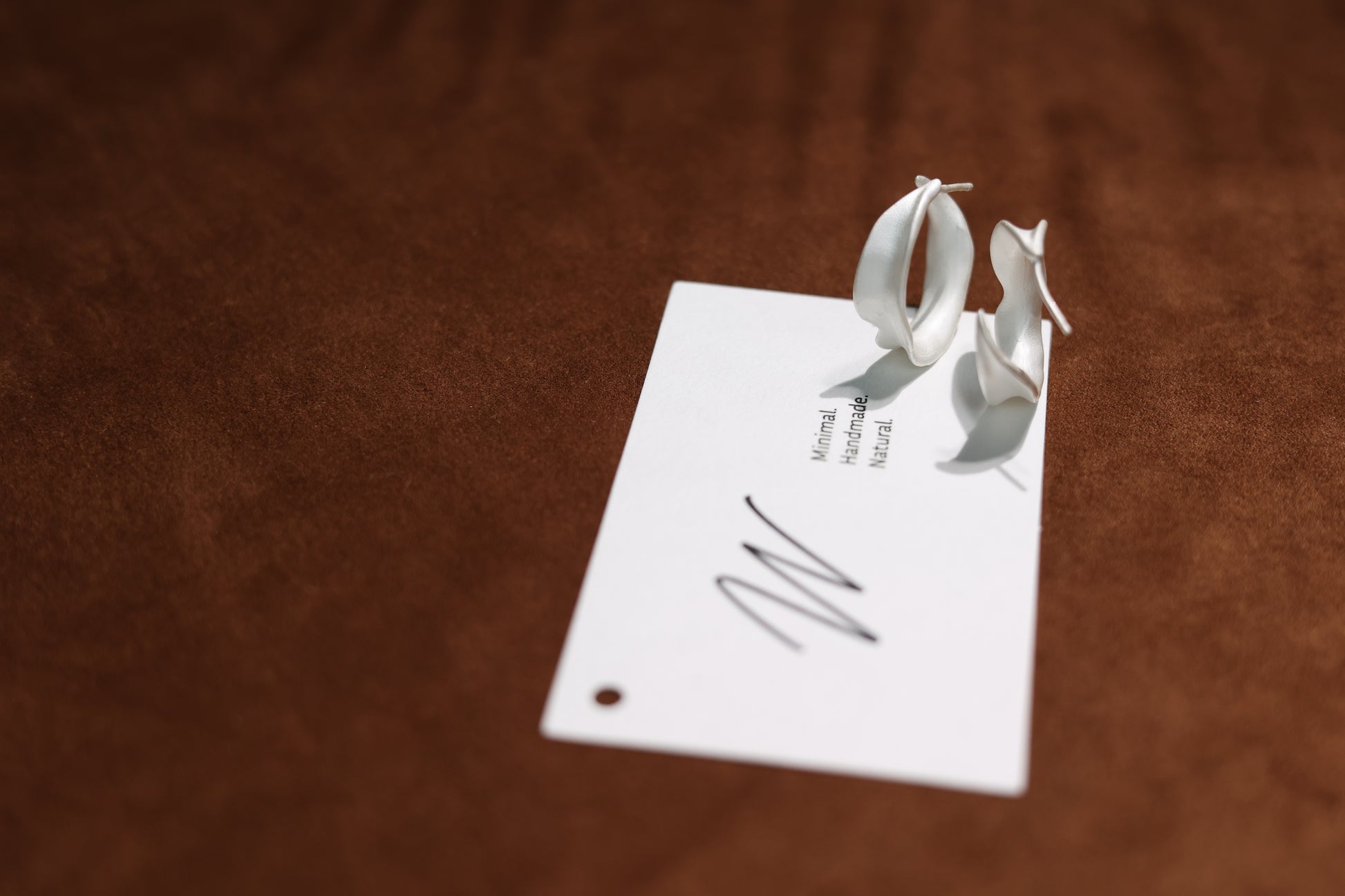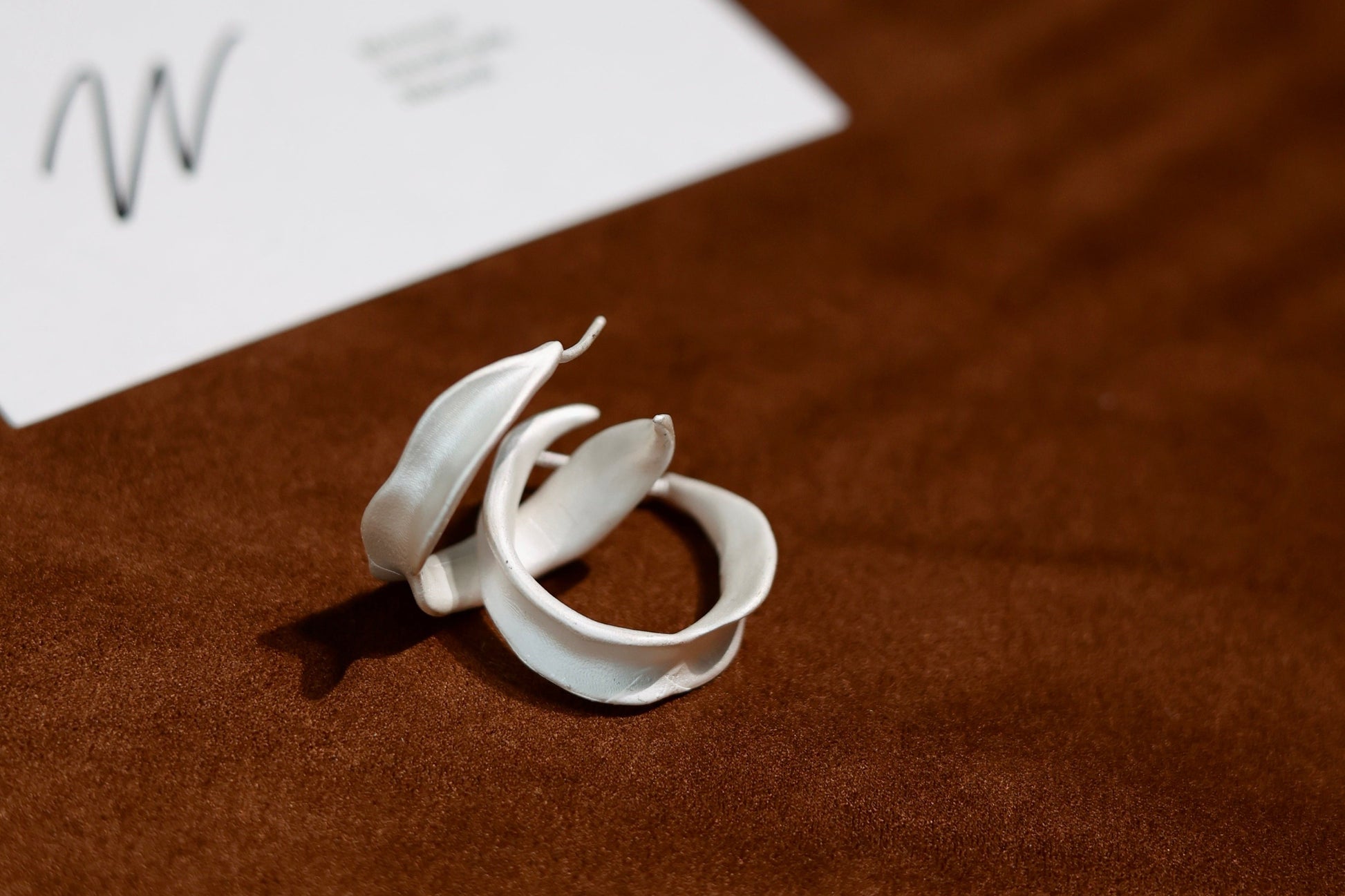 Elegant Sterling Silver Eaarings inspired by Leaves, crafted by sterling silver depletion gliding techniques to form these Serene Leaves with frosted white surface.